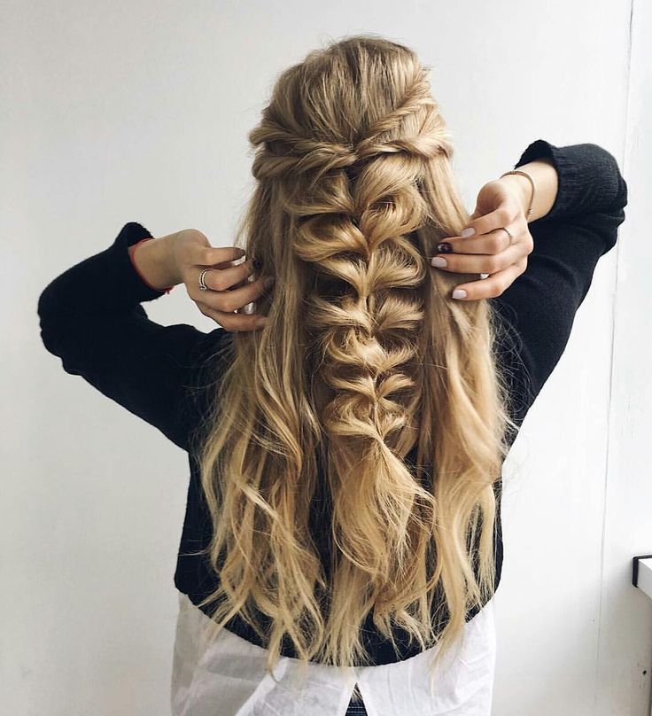 Следующая прическа такая красивая! Этот вид отличается гладкой подачей в косах, которые примерно на полпути превращаются в распущенные и вьющиеся волосы.
