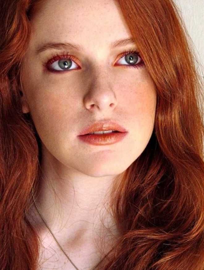 - Рыжие волосы, светлая кожа и светло-зеленые глаза