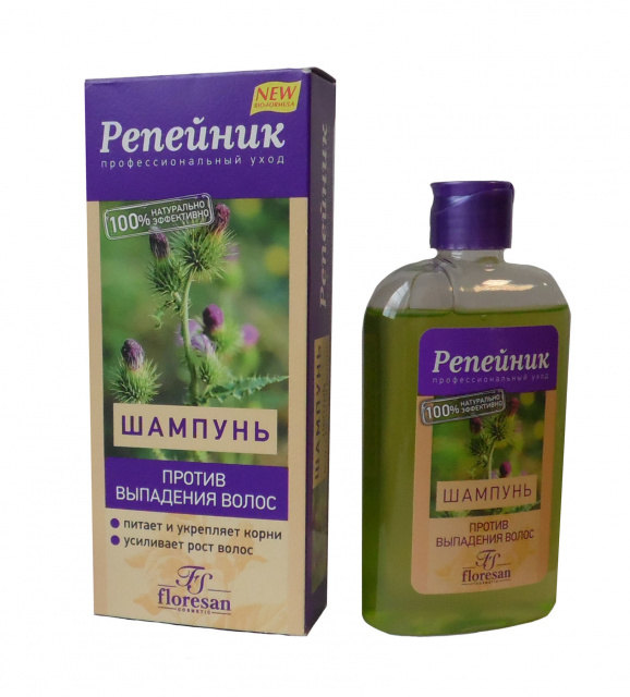 Натуральный репейный шампунь отечественного производства, выпускающийся во флаконах объемом 200 миллилитров. Обладает обеззараживающим действием, укрепляет стержни волос, предотвращая повышенную ломкость, стимулирует питание корней, увеличивая интенсивность роста.