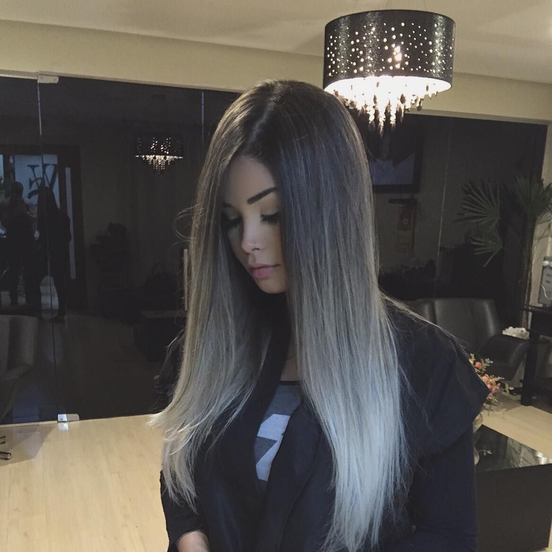 Самым светлым из всевозможных оттенков пепельного шатуша является пепельный блонд. Важно учитывать, что выбирая его, градиент между базовым цветом и между осветленными локонами получается более четким, но в то же время выглядит броско и оригинально. При этом светлые глаза станут ещё более холодными и сверкающими, а карие станут манящими и выразительными из-за резкого контраста со светлыми локонами.
