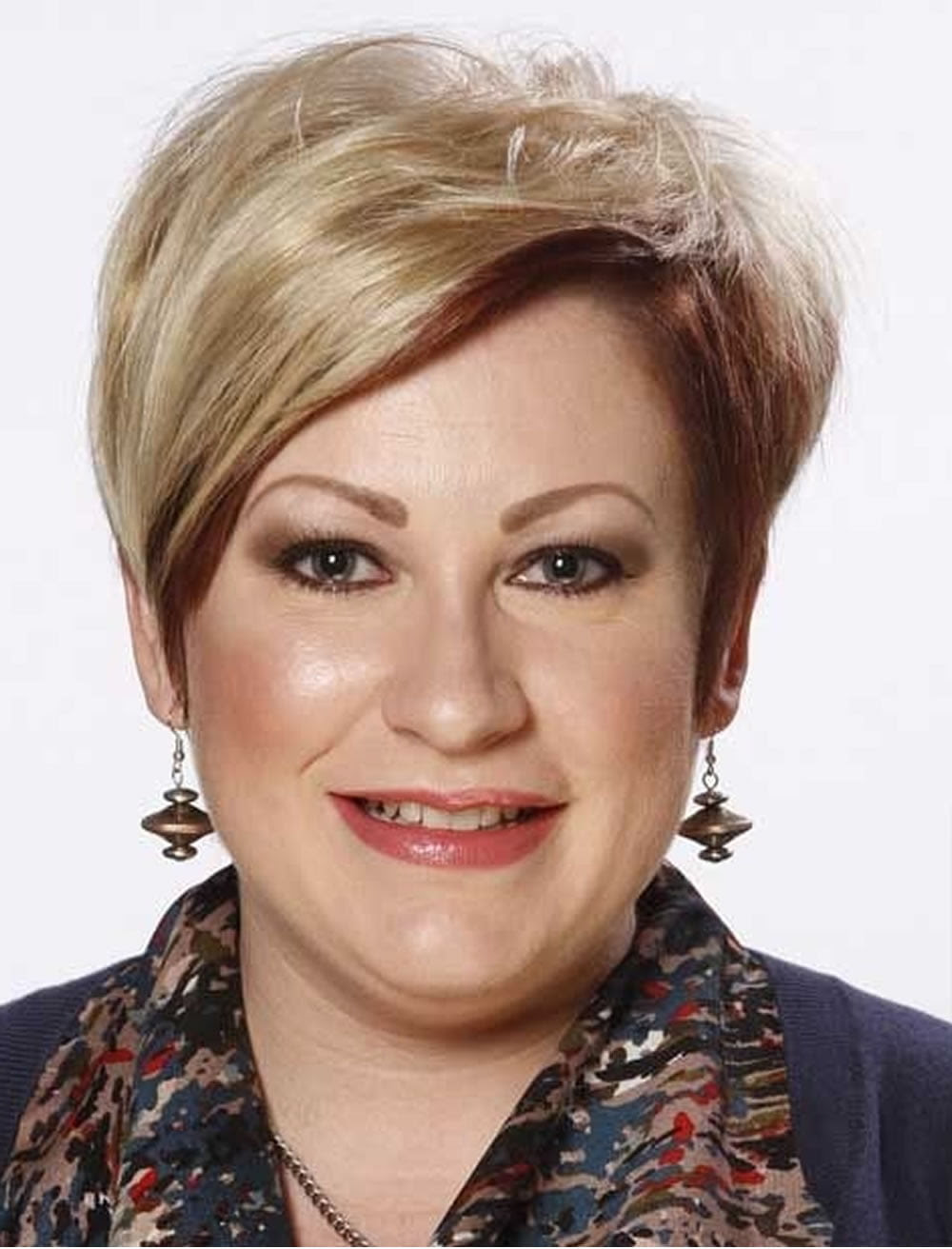 Все полные женщины могут «носить» стрижку пикси. Креатив короткой прически со скошенной челкой смотрится превосходно. Пикси полным женщинам, актуальна на коротких волосах. С объемной градуировкой стрижка укладывается самостоятельно, она сформирует женщине современный деловой образ.
