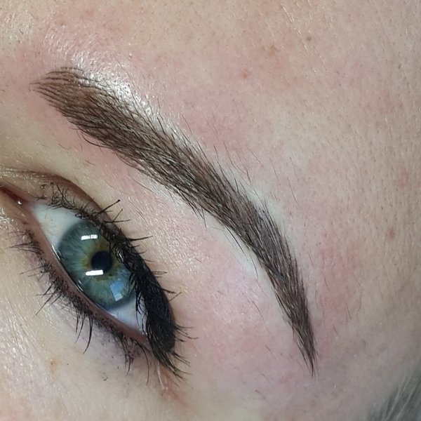 - Также используется легкое затемнение, чтобы придать бровям более естественный вид за счет размера. Эта техника требует тонкого мастерства и артистизма, чтобы брови выглядели естественно, поэтому обязательно изучите их, прежде чем назначать перманентный макияж кому-либо.